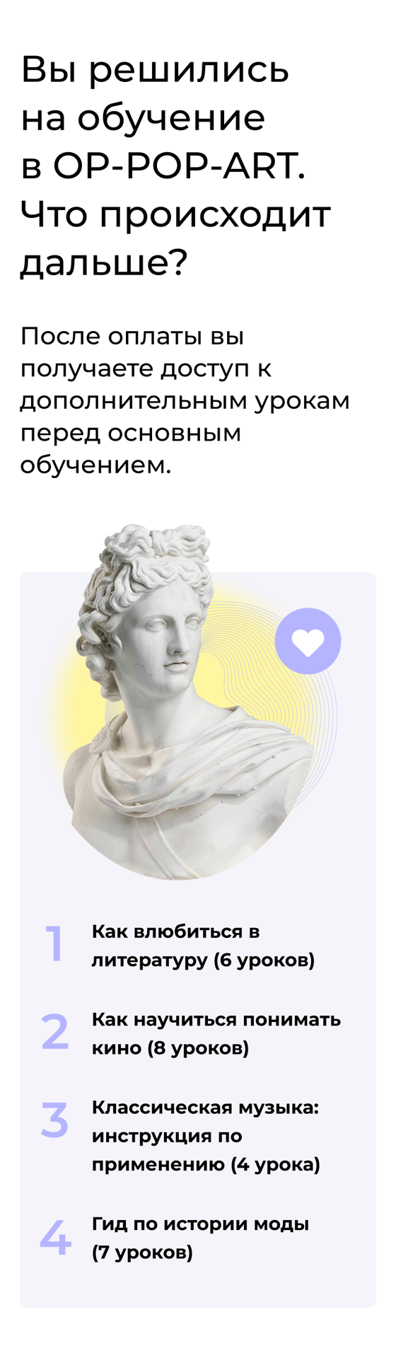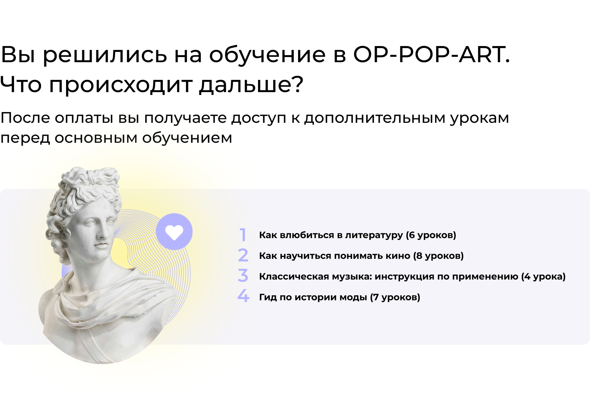 После оплаты вы получаете доступ к дополнительным урокам перед основным обучением