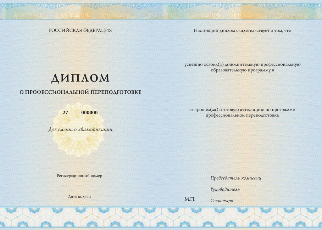 Профессиональная переподготовка — вид дополнительного профессионального обучения. Успешное прохождение программы подтверждается выдачей диплома о профессиональной переподготовке и присвоением новой квалификации.